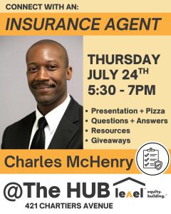 Join us during our Open Office Hours to hear from Insurance Agent Charles McHenry. Enjoy some pizza during the presentation, have questions answered, get a home item giveaway and as always – resources for the path to homeownership.